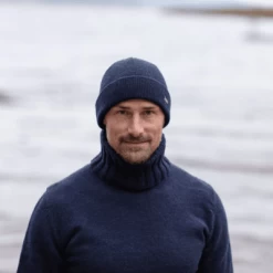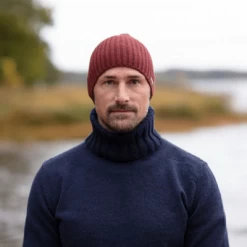 Avan Jr er en ribstrikket klassisk beanie i uldblanding med en fold-up, og der er brugt økologisk bomuldsgarn til foring på indersiden for at give den bedst mulige komfort. Avan er strikket i et innovativt uldmixgarn, hvor 85% af materialet er genbrugt. Strikket på egen fabrik i Sätila, Sverige.